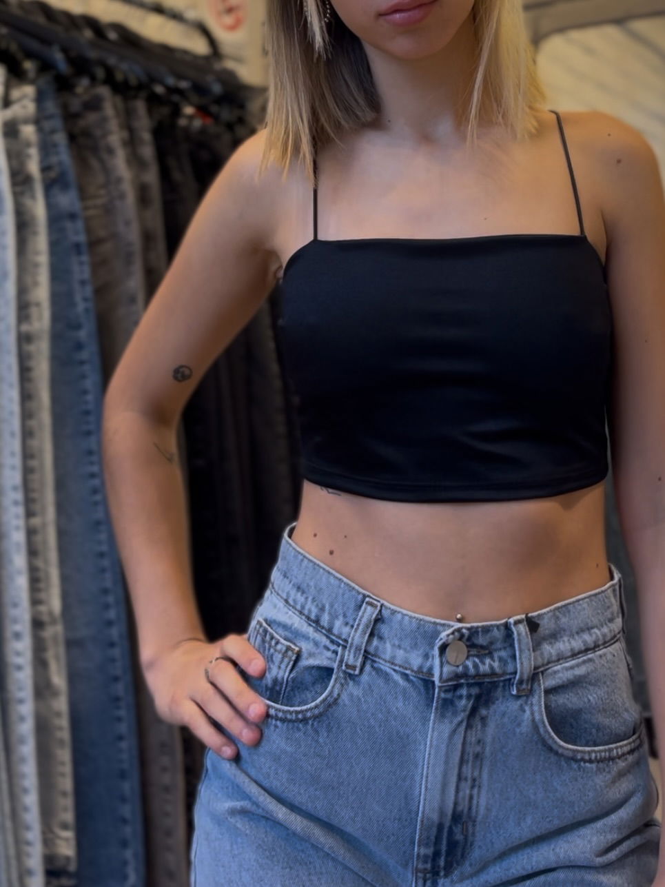 Top saten negro
